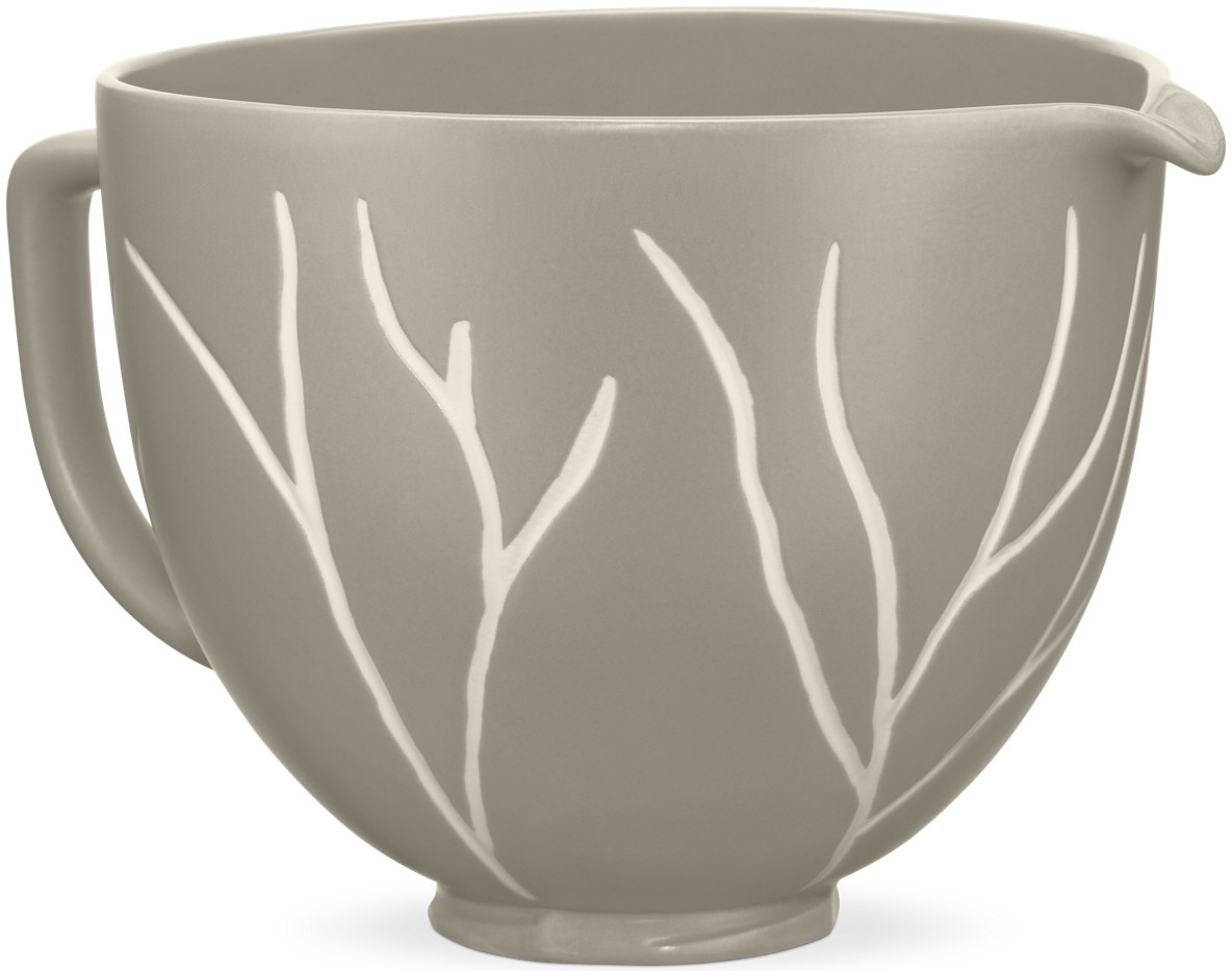 Accessorize your KitchenAid® Tilt-Head Stand Mixer with this 5 Quart Bare Leaves Bowl. Inspired by the winter and snowfall, the Bare Leaves bowl invites a spirit of gathering and coziness, and allows the natural element of trees inside. Accessorize your Stand Mixer with this textured, light tan reactive glazed ceramic bowl.Read More
